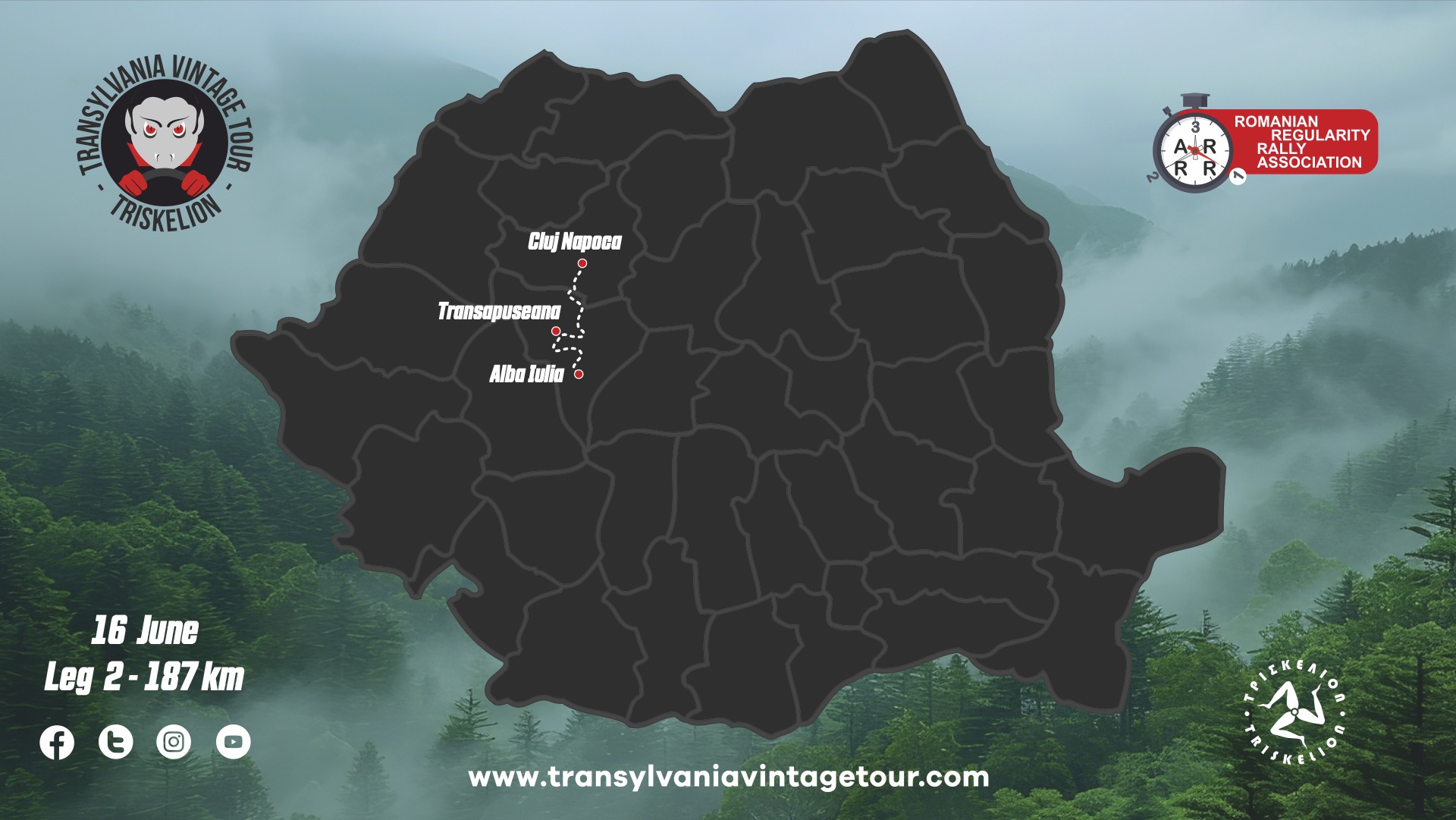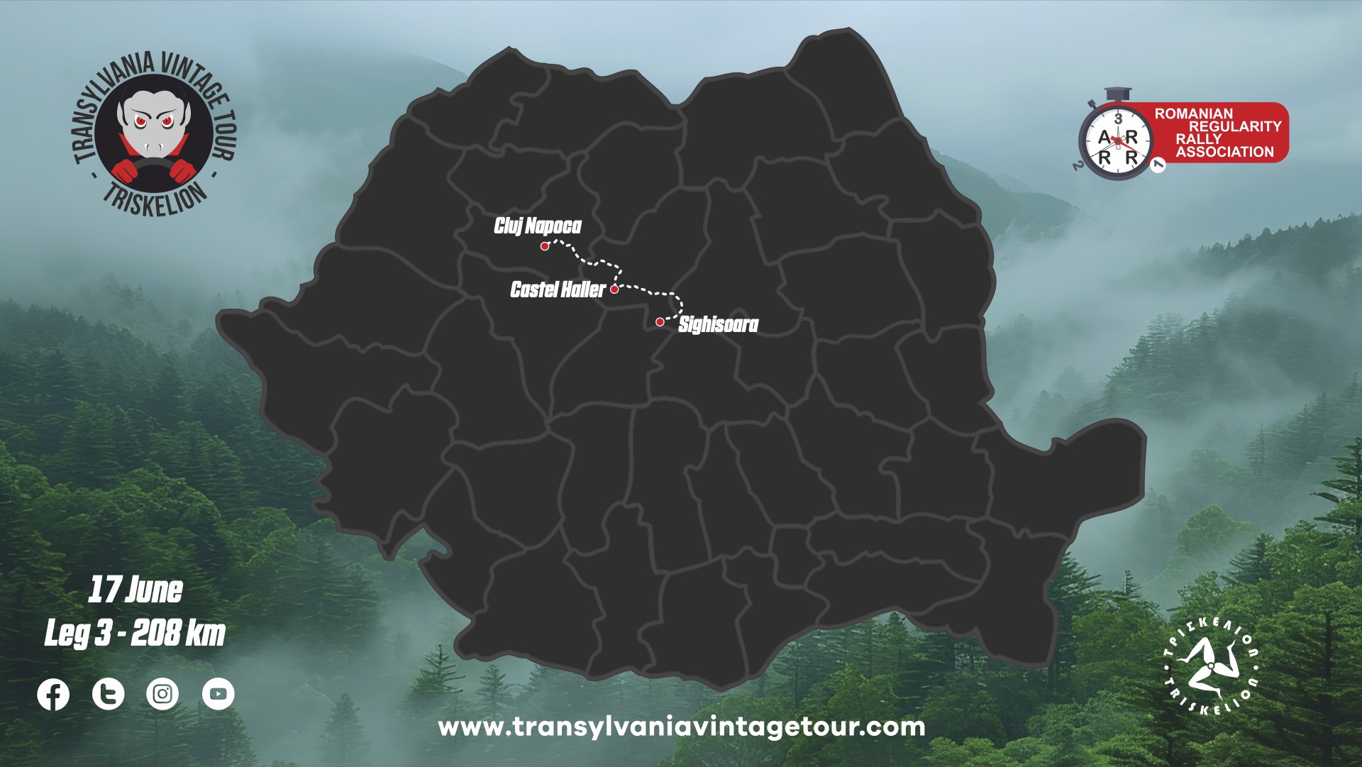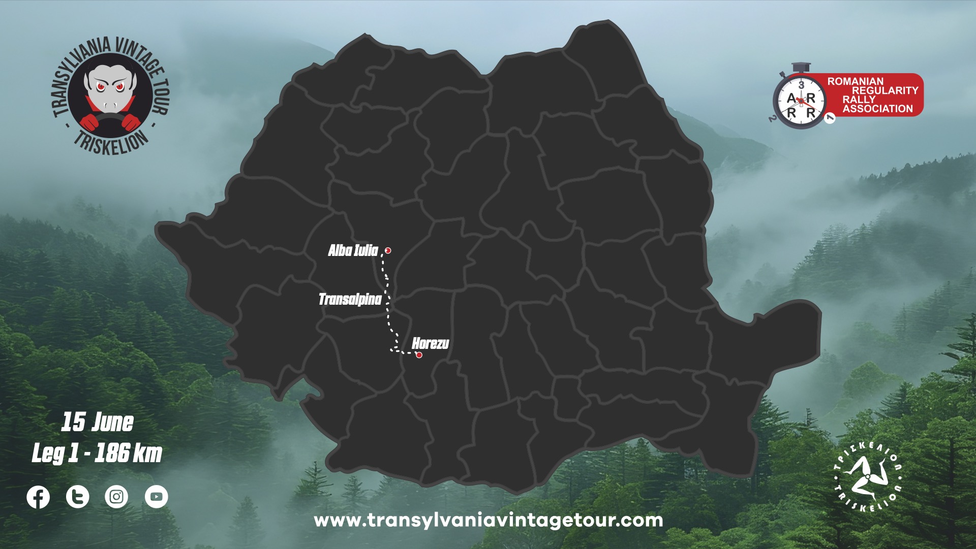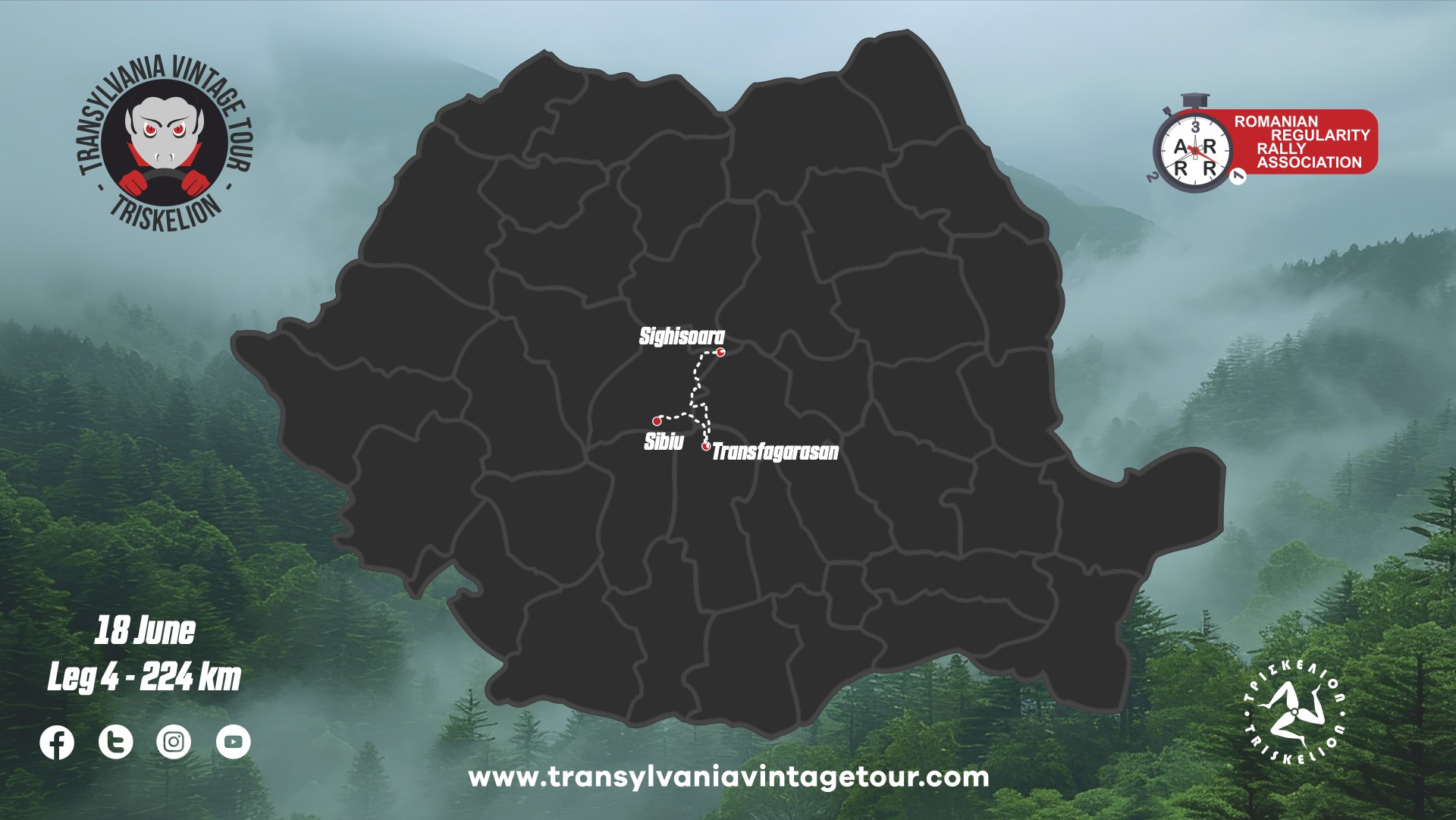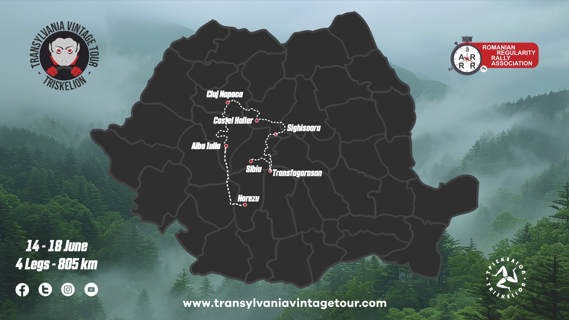 The length of the Transylvania Vintage Tour is approx 860 km, with 18 Regularity Tests. The tour is divided into 4 legs and 11 Sections. The interval between cars is 1 minute.